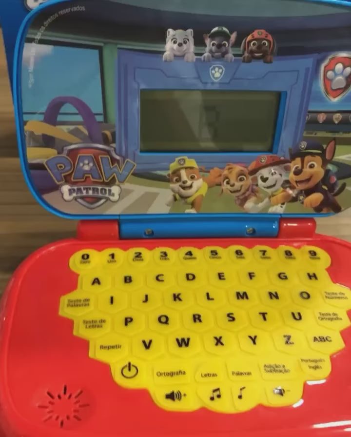 Com design superfofo inspirado na Patrulha Canina 🚨🐾, o laptop é bilíngue (português e inglês) 🇧🇷🇺🇸. Perfeito para imitar os pais 👩👩👦, brincar de escolinha 🏫 ou compartilhar momentos com os amigos 🤝.